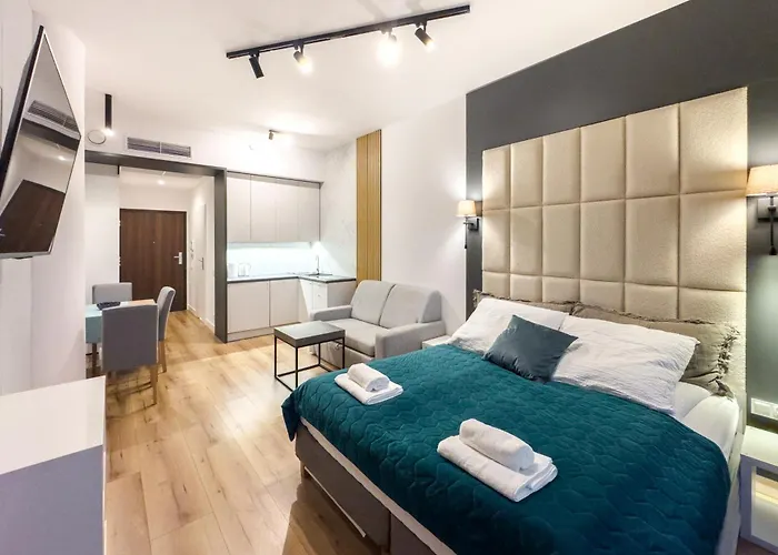 O apartamento fica no bairro Srodmiescie, a aproximadamente 20 minutos a pé do Castelo dos Duques Pomerânios. Teatr Lalek "Pleciuga" está a poucos passos do alojamento.